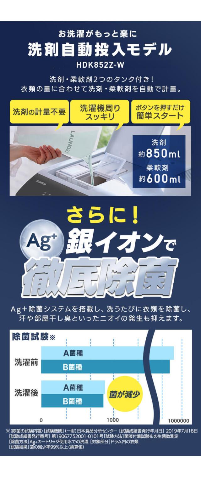 洗濯機 ドラム式 洗濯乾燥機 ドラム式洗濯乾燥機8.0kg/5.0kg自動投入 HDK852Z-W ホワイト 洗濯 乾燥 8キロ 温水 節水 洗剤自動投入 アイリスオーヤマ 送料無料