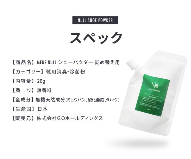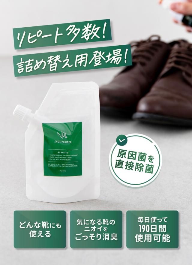 【お得な詰め替え用】 靴 消臭粉 シューパウダー 詰め替え メンズ NULL デオドラント 【 気になる靴の臭いに 】 男性用 靴の消臭 足の臭い 対策 どんな靴にも使える ( 消臭パウダーで 足 靴 臭いの原因を除菌 ) 詰替 簡単便利なキャップ式