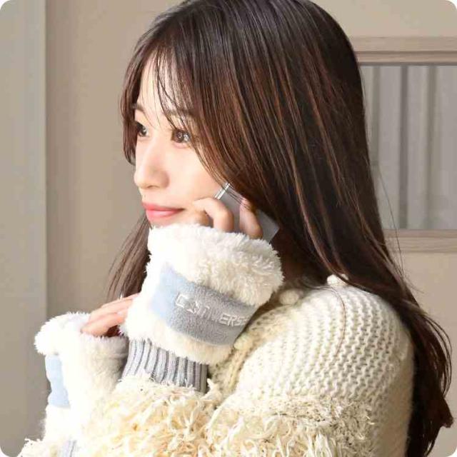 ミトン状態から折り返して指が出せる2Way仕様!スマホを操作したり細かい作業をしたいときに便利。デスクワーク中のハンドウォーマーとしても使えます。