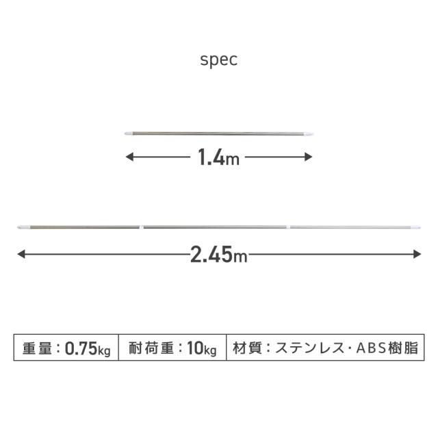 | サイズ | (約)長さ140〜245cm×直径3cm |
