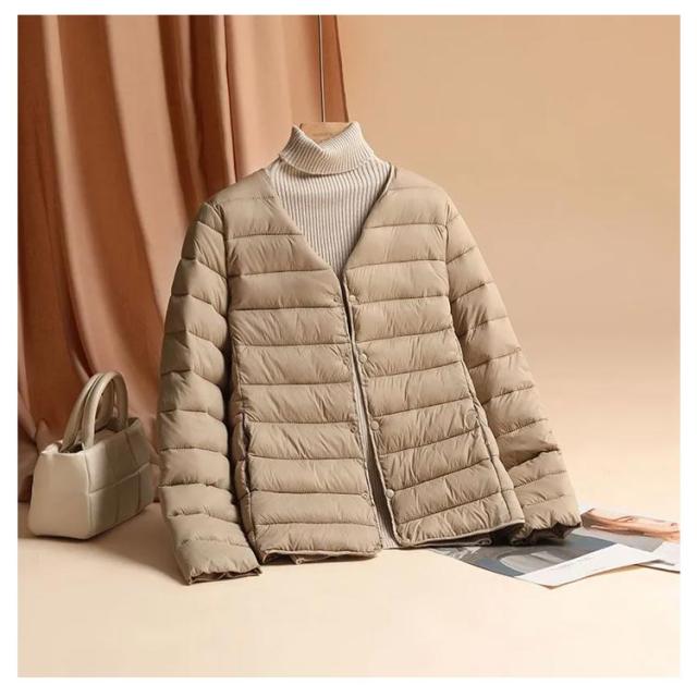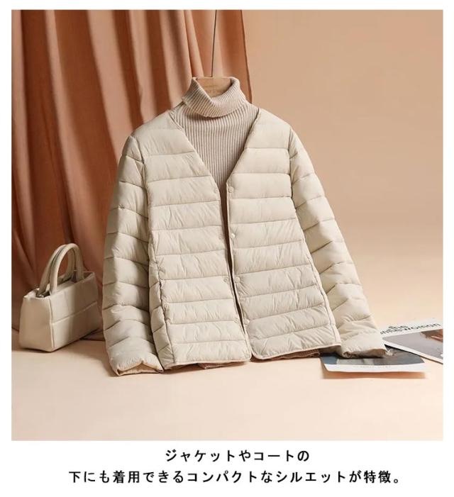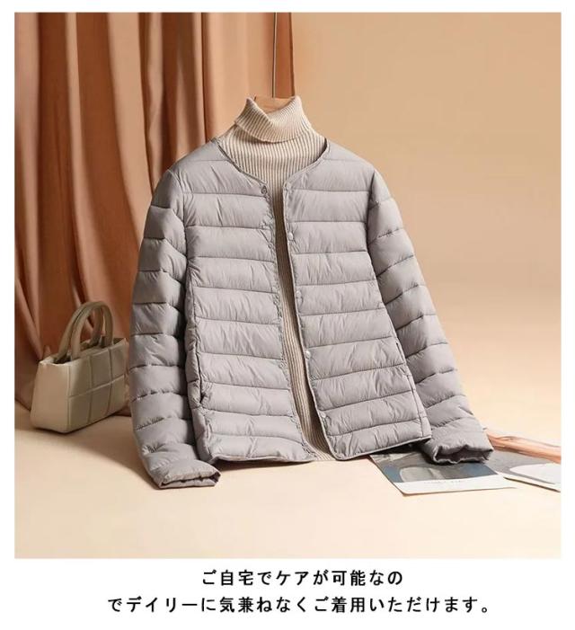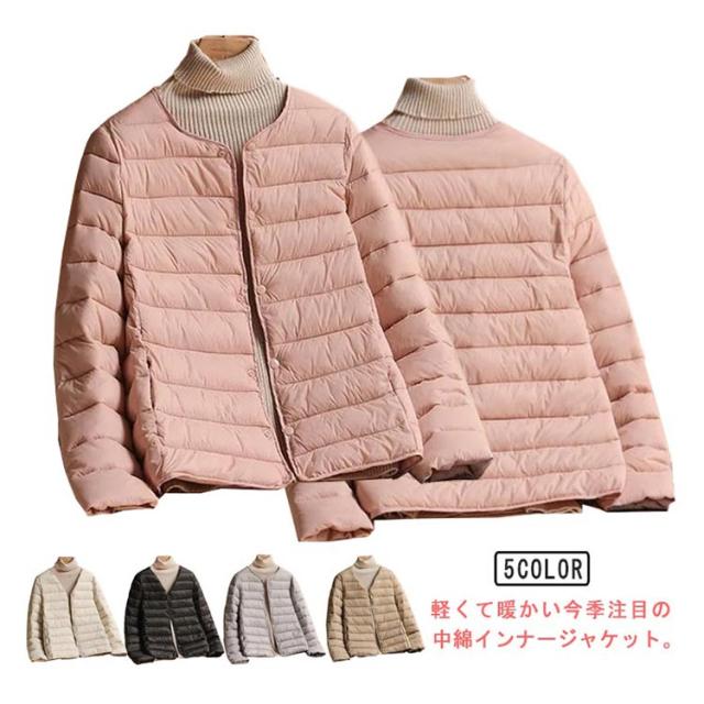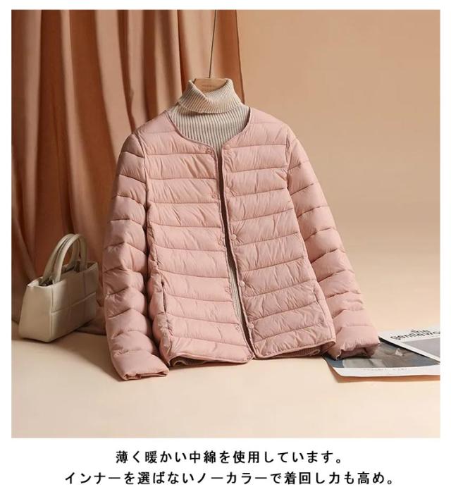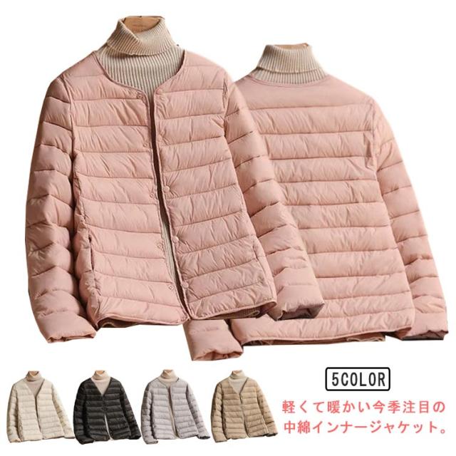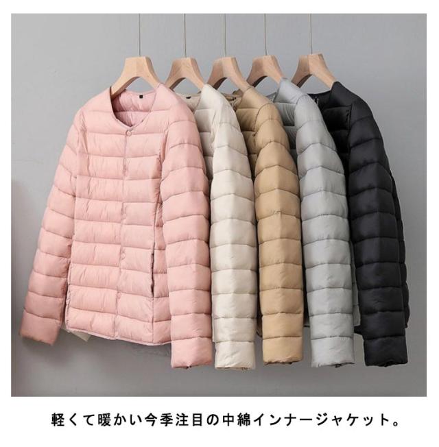 中綿 ジャケット レディース クルーネック ノーカラー ジャケット ショート 軽量 薄手 防寒 保温 あたっか 長袖 コートイン インナージャケット 春 秋 冬 アウター 上着 大きいサイズ 【送無】