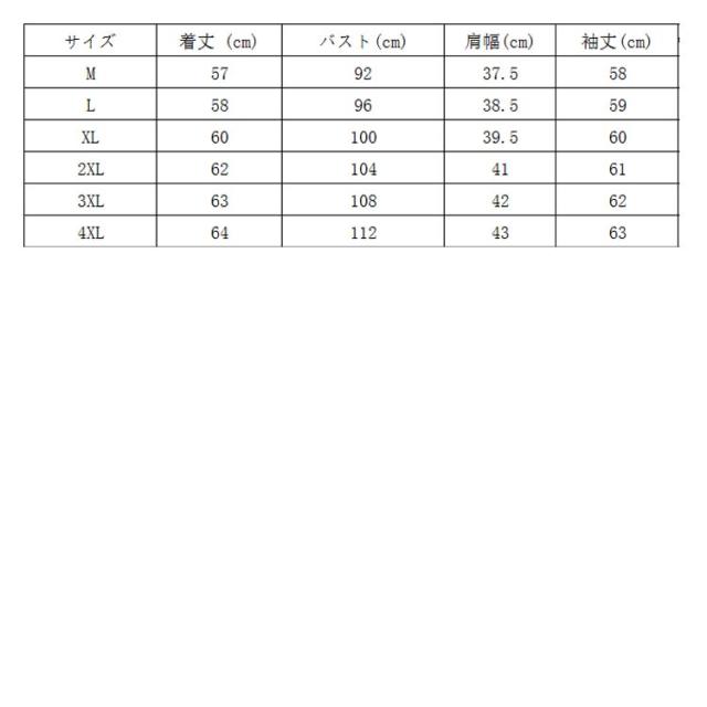 | サイズについての説明 | M L XL 2XL 3XL 4XL |