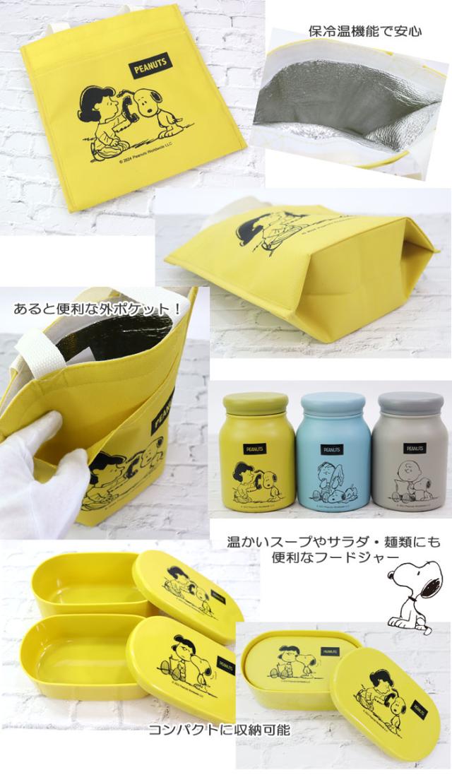 3点 お弁当箱セット フードジャー フードコンテナ2個組 保冷温バッグ スヌーピー ランチボックス ランチバッグ 子供 レディース キッズ 中学生 高校生 幼稚園 お弁当 ab-60299