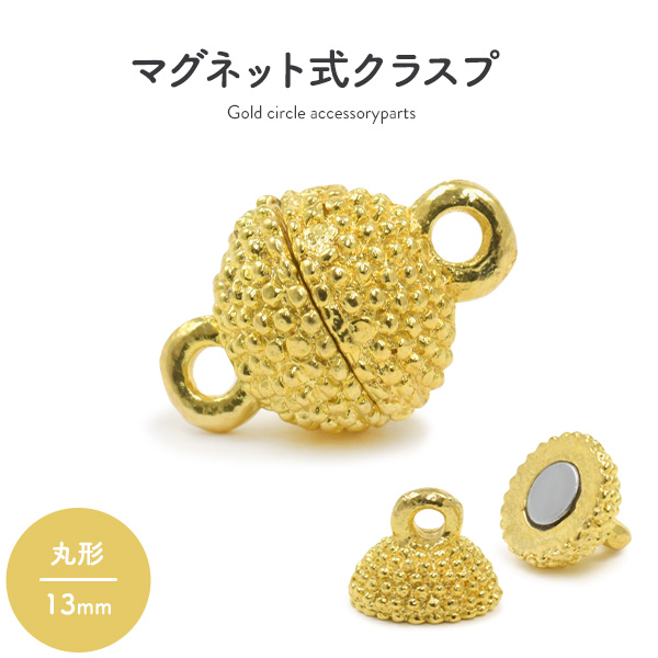 マグネット式 クラスプ 丸形 13mm ゴールド 磁石式留め具 アクセサリーパーツ ネックレス ブレスレット アンクレット 留め具 素材 手作りアクセ パーツ レトロ 手芸 工作 修理 ハンドメイド用素材 手作りアクセサリー パーツ