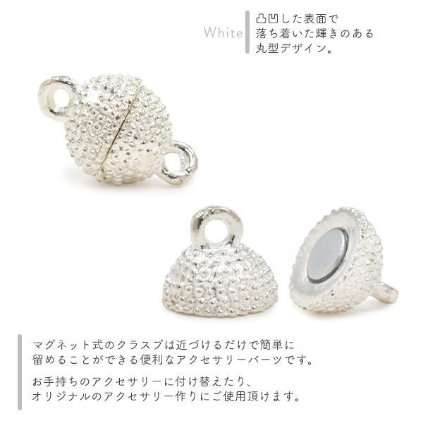 マグネット式 クラスプ 丸形 13mm ホワイト 磁石式留め具 ネックレス ブレスレット アンクレット 留め具 アクセサリーパーツ 手作りアクセ 素材 パーツ