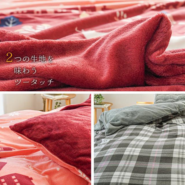 当社限定品 あったか掛け布団カバー ダブル ロング 掛布団カバー 190×210 SPES フランネル フリース リバーシブル 毛布要らず 北欧 チェック【attktk】 【shiki-kett25】