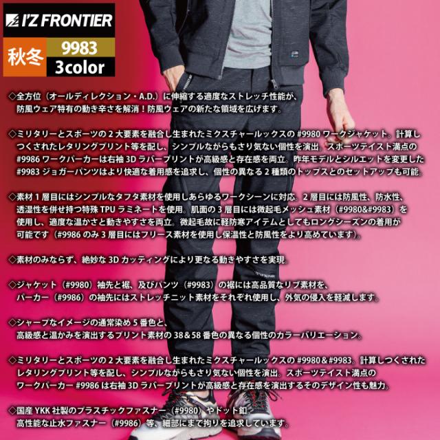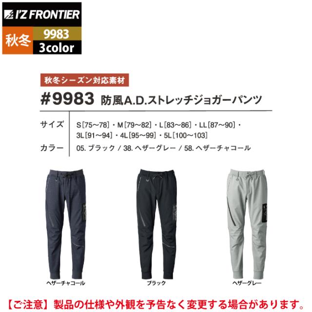 アイズフロンティア 作業服 秋冬 9983 防風ADストレッチジョガーパンツ S-5L 秋冬用