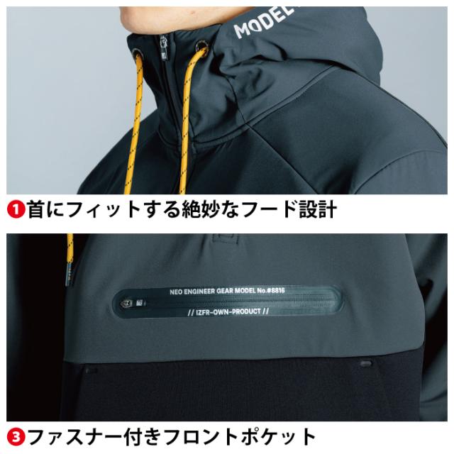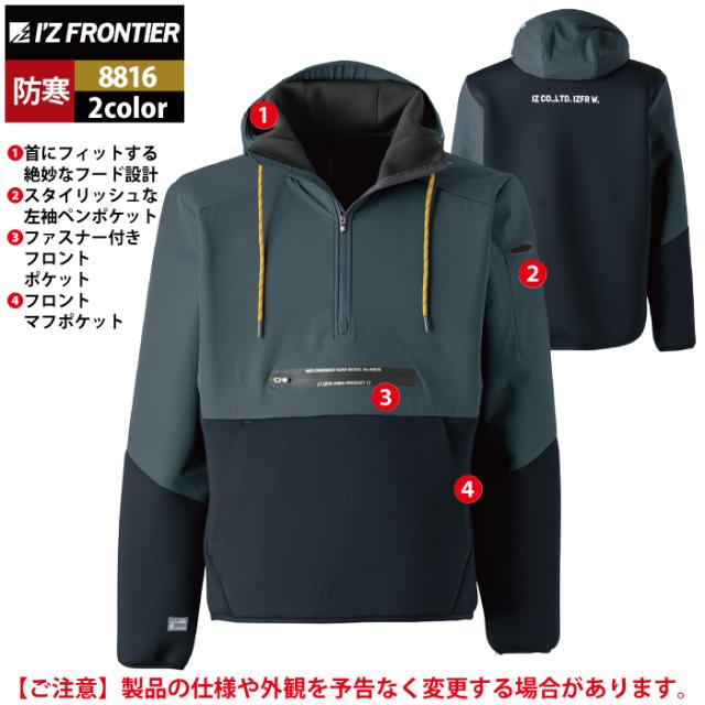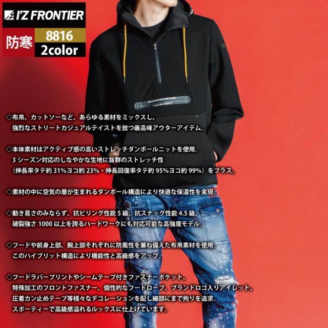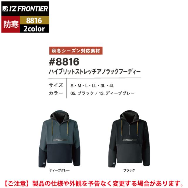 アイズフロンティア 作業服 秋冬 8816 ハイブリットストレッチアノラックフーディー S-4L 秋冬用