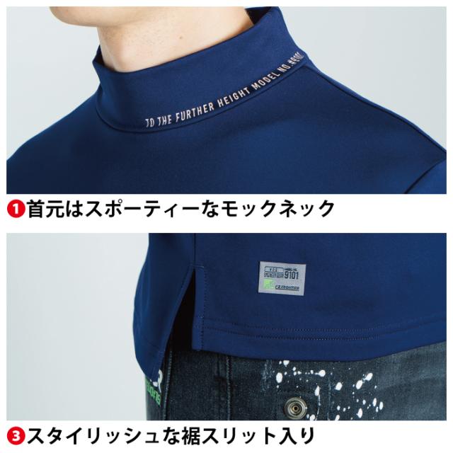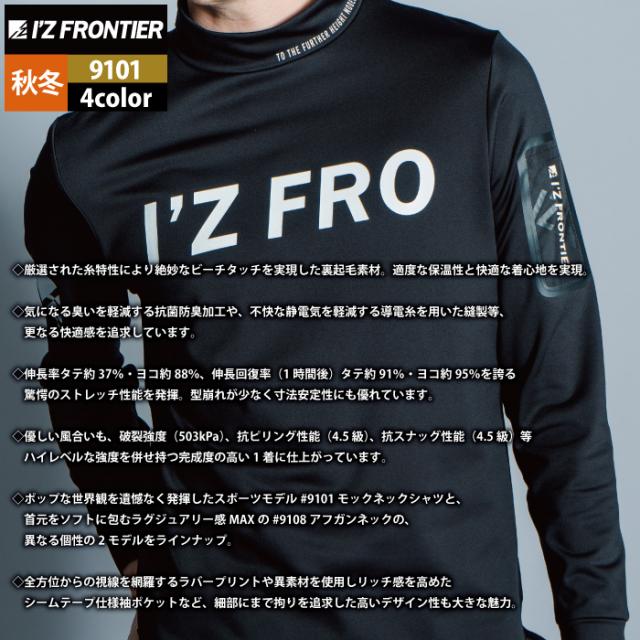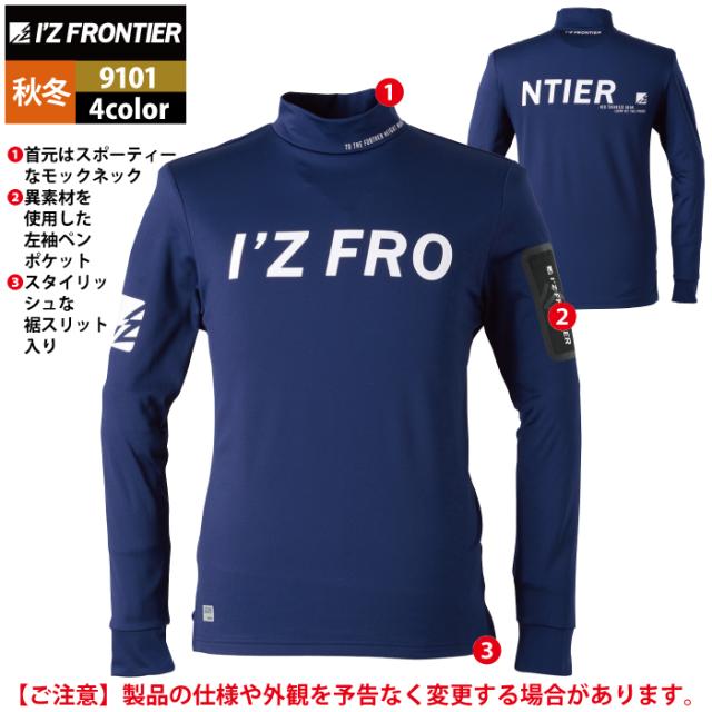 アイズフロンティア 作業服 秋冬 9101 裏起毛ストレッチ長袖モックネックシャツ S-3L 秋冬用