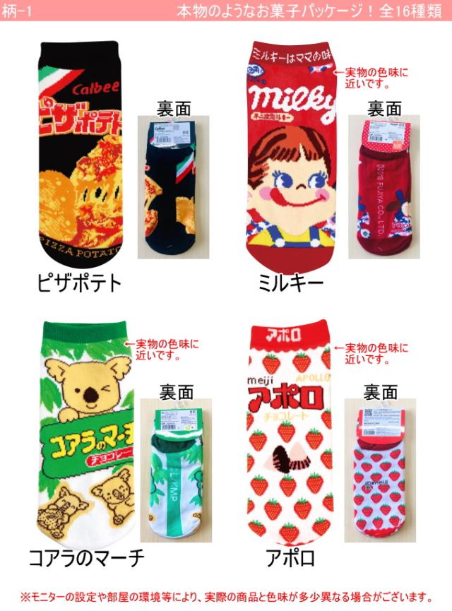 お菓子ソックス 22-24cm 1足 靴下 ソックス お菓子 パッケージ ネコポス対応 ピザポテト ミルキー チロルチョコ コアラのマーチ