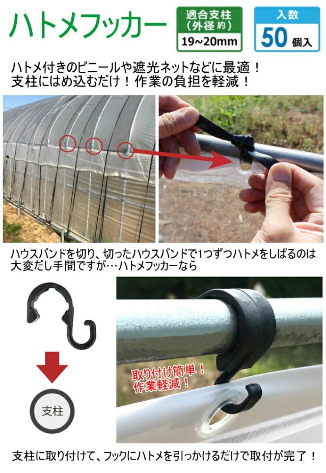 ハトメフッカー 50個入り 外径19-20mm用 ブラック 園芸 畑 庭 支柱 栽培 花 野菜 防止 固定 支柱用 便利