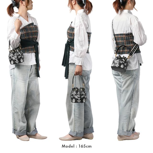 | モノグラムプリントを全面に施した巾着バッグ カステルバジャックのモノグラムを大胆にプリントした、巾着バッグです。"ちょい派手"をイメージした大人の遊び心あるデザインに仕上げました。 メインルームは正面上部の留め具を緩めることで簡単に開閉ができます。折り財布がすっぽりと収まるサイズ感です。また内装にオープンポケットを配置。 その日のスタイルで使い分け ブランドロゴを大胆にあしらったショルダーベルトが付属しているので、その日のスタイル・その日の気分に合わせてショルダーバッグや巾着バッグとしてお使いいただける2WAY仕様になっています。 レザーライクなPVC 本体素材には、丈夫で水や汚れに強いポリ塩化ビニルを使用しています。レザーライクで高級感を演出しており、比較的軽量に仕上げています。 |