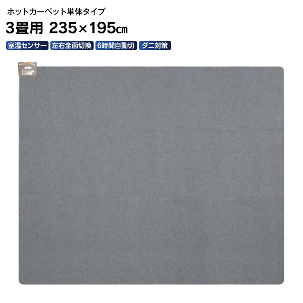 【室温センサー付】ホットカーペット 本体(電気カーペット 本体) 3畳用 ほかだんカーペット 6時間自動切タイマー(節電) ダニ退治(清潔) 3畳用ヒーター単体 ホットカーペット本体のみ3畳サイズ
