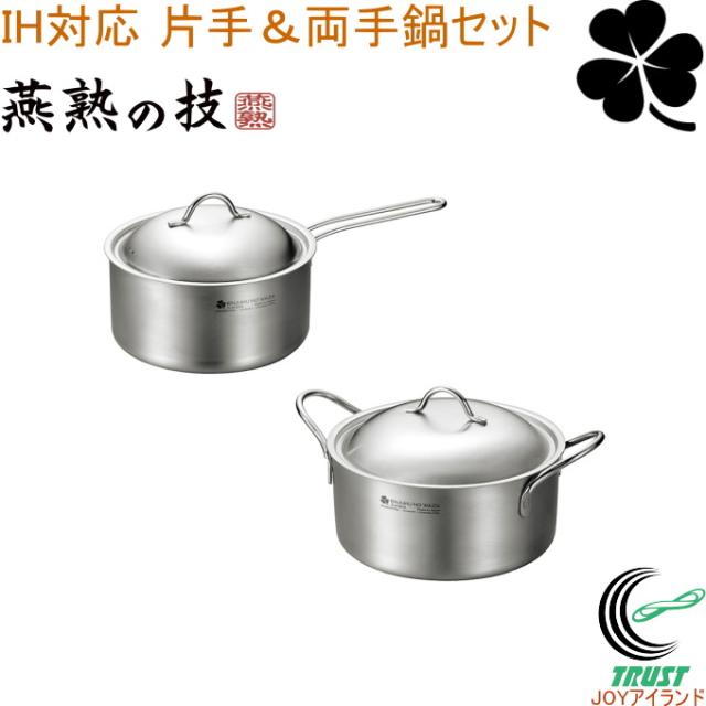燕熟の技 クローバー 片手鍋18cm・両手鍋20cm EJSA-1800 日本製 燕三条産 ステンレス アルミ キッチン用品 鍋 片手鍋 両手鍋 IH対応 ガス火OK 食洗器対応 オーブン調理可 アウトドア 炭火 焚き火 セット