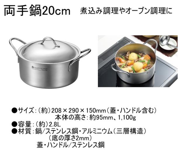 鍋本体:ステンレス鋼、アルミニウム(三層構造) (底の厚さ2mm) 蓋・ハンドル:ステンレス鋼 |