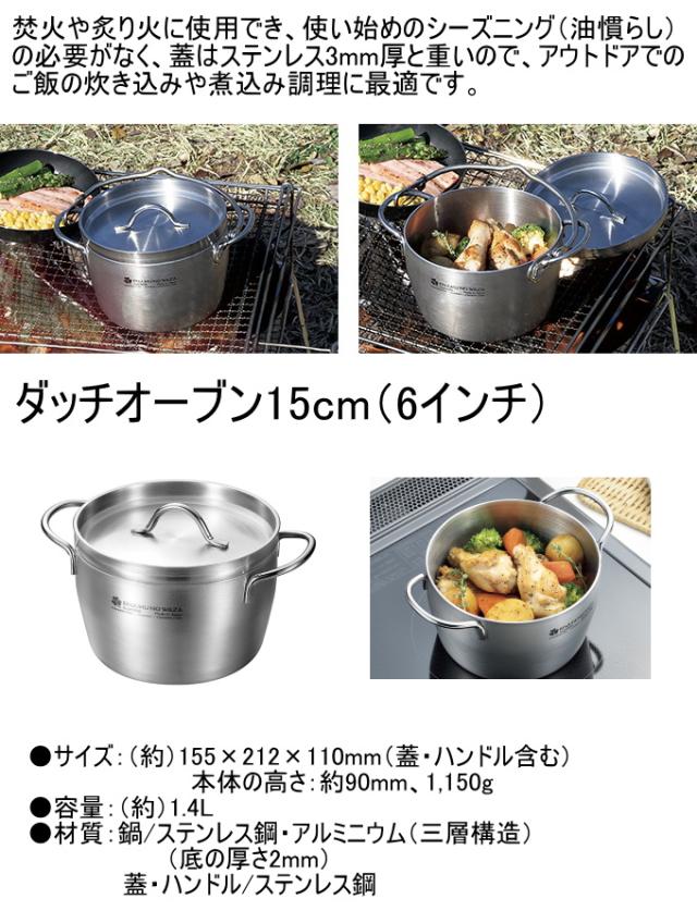 鍋の本体は熱伝導性に優れたアルミニウムを耐久性と保温性に優れたステンレス鋼でサンドした3層構造(3LAYERS)で、軽量で扱いやすく、外面のサテン仕上げにお洒落なロゴ入りです。 IHはもちろん、ガス火やオーブン調理、アウトドアでの焚火や炭火にも対応します。 ハンドルと蓋をオールステンレス製にすることで耐久性に優れお手入れも簡単でそのままオーブンに入れての調理や、食洗機にも対応します。 片手鍋とダッチオーブンのセットです。 ※ハンドルは調理中や調理後は、熱くなりやすいため、ミトンや鍋つかみを使用してください。 |