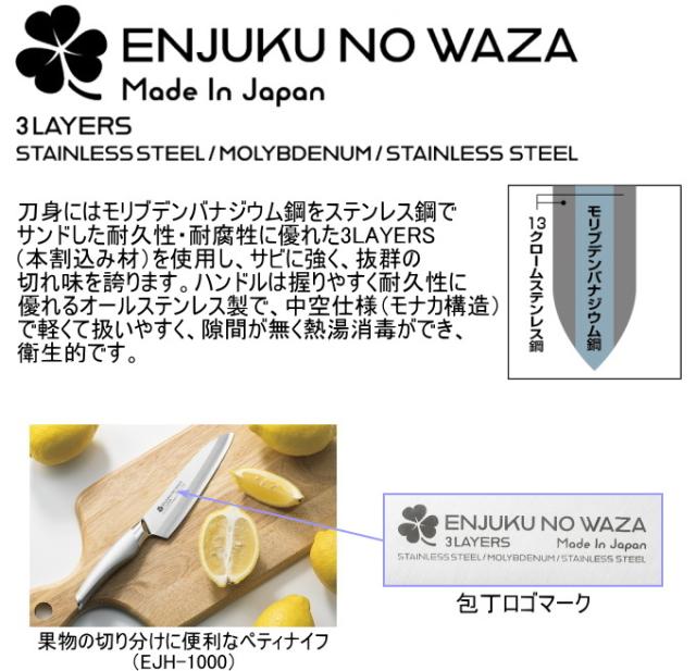 ●鍋 鍋本体:ステンレス鋼、アルミニウム(三層構造) (底の厚さ2mm) 蓋・ハンドル:ステンレス鋼 ●ペティナイフ 刀身:ステンレス刃物鋼(心材/モリブデンバナジウム鋼) ハンドル:18-8ステンレス鋼 ●キッチンバサミ 刃部:ステンレス刃物鋼 ハンドル部:ステンレス鋼 |