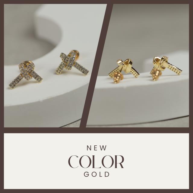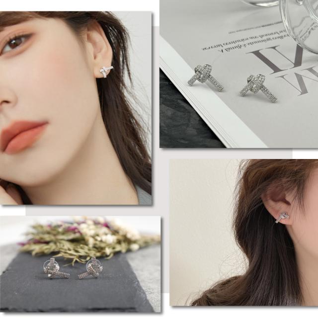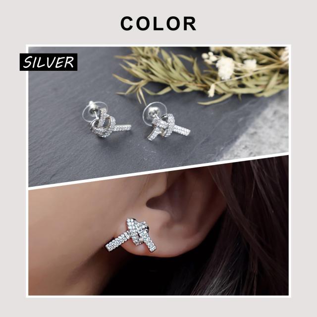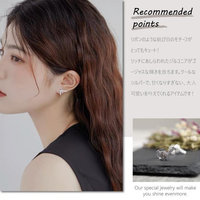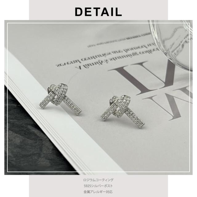 特徴:結び目のようなデザインピアス。ジルコニアがキラキラ輝き、耳元をパッと明るく!そして女性らしさをプラスしてくれる、そんな可愛いピアスです。