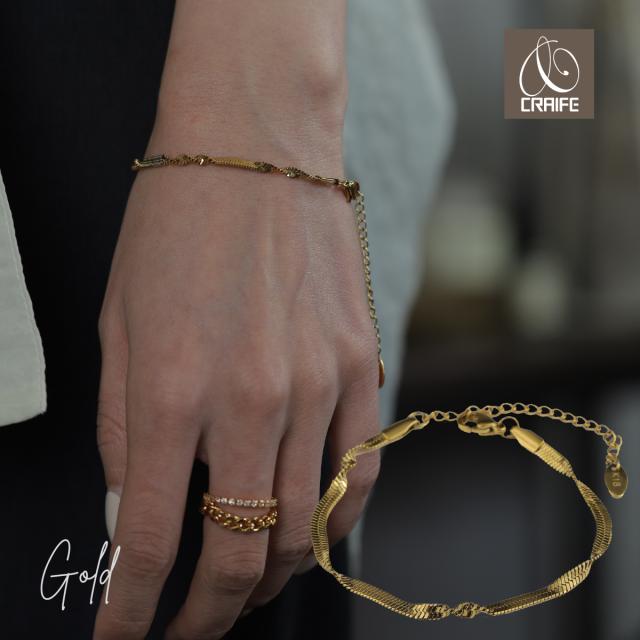 ブレスレット サージカルステンレス 316L 金属アレルギー対応 18K コーティング レディース スネークチェーン 大人 かわいい シンプル 上品 エレガント ジュエリー ゴールド 送料無料 プチプライス高見え CRAIFE
