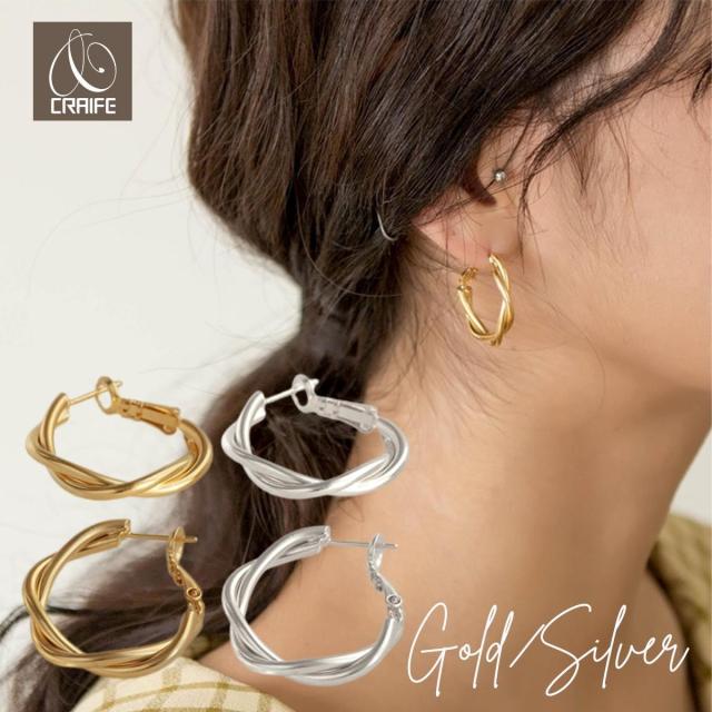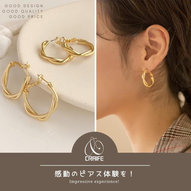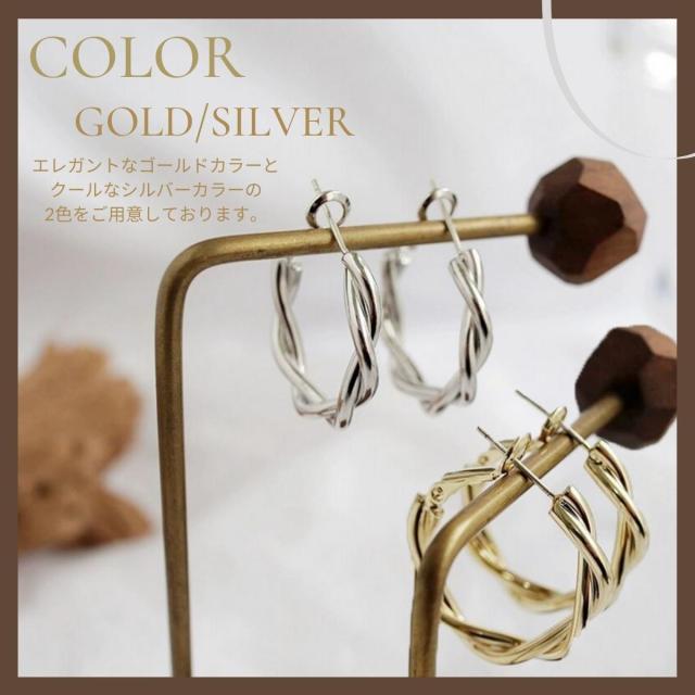 ピアス ツイスト フープ 両耳セット 金属アレルギー対応 18K コーティング ニッケルフリー レディース 大人 かわいい エレガント カジュアル シンプル ジュエリー 「ゴールド」「シルバー」 【送料無料】
