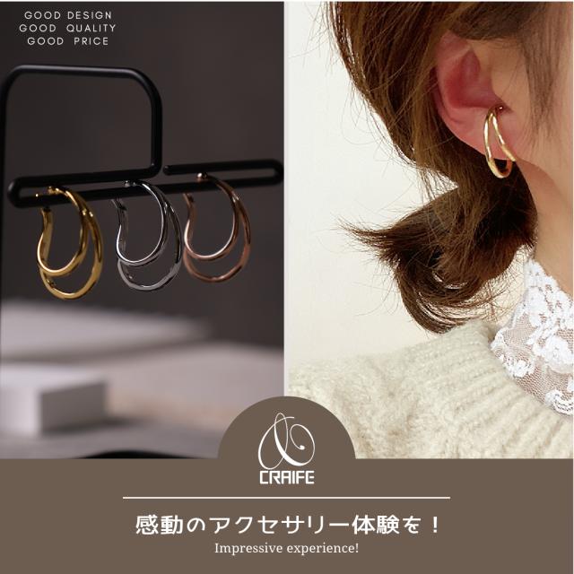 イヤーカフ イヤーカフス イヤカフ イヤリング 大ぶり 2点セット 金属アレルギー対応 18K ニッケルフリー ダブルライン 大人 かわいい ジュエリー ゴールド シルバー ピンクゴールド 左右セット 送料無料 プチプライス高見え CRAIFE