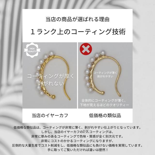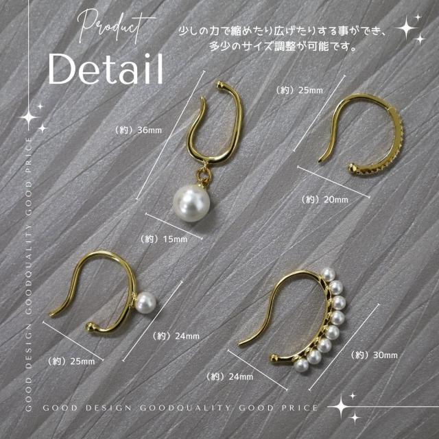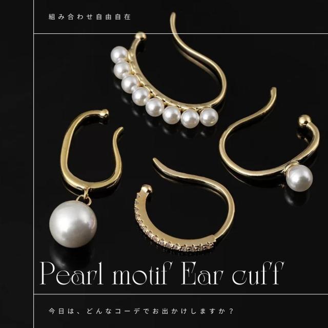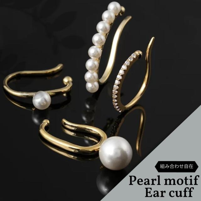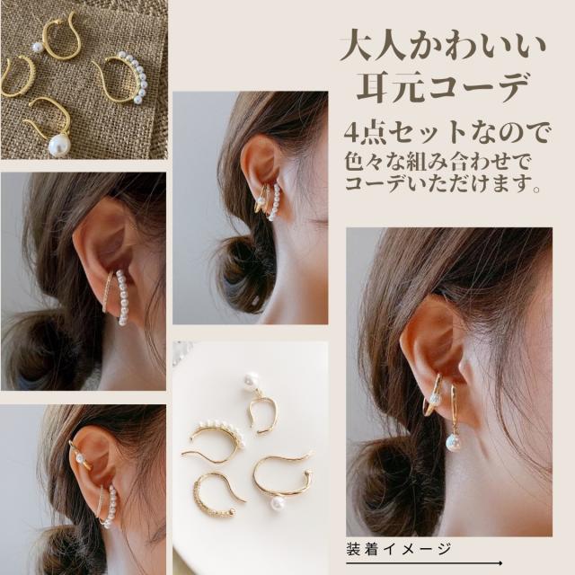 特徴:パール モチーフが特徴のイヤーカフ。4点セットなので重ね付けや両耳に付けたりなど、お好みに合わせて自由なアレンジをお楽しみいただけます。