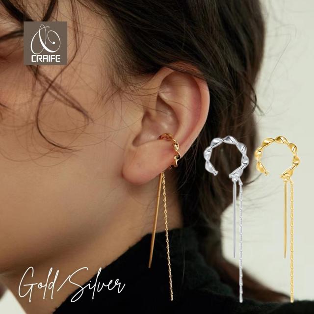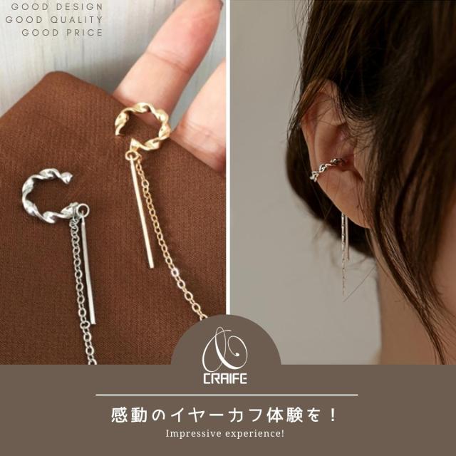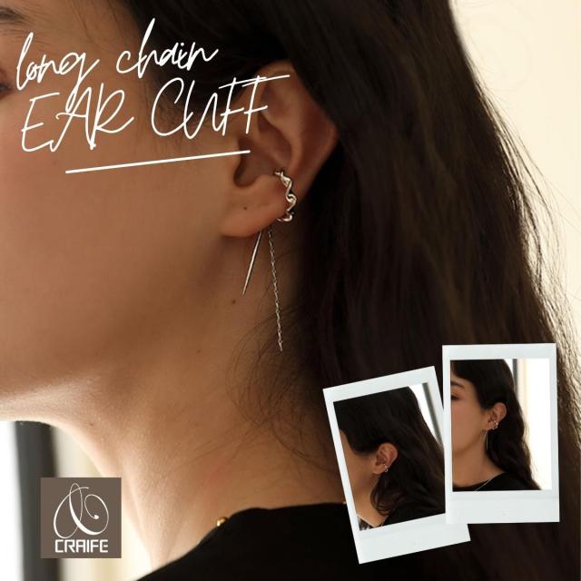 イヤーカフ ロングチェーン 金属アレルギー対応 18Kコーティング ニッケルフリー イヤーカフス イヤカフ ストレートバー イヤリング 大人かわいい ジュエリー ゴールド/シルバー 片耳用【送料無料】 u プチプライス高見え CRAIFE