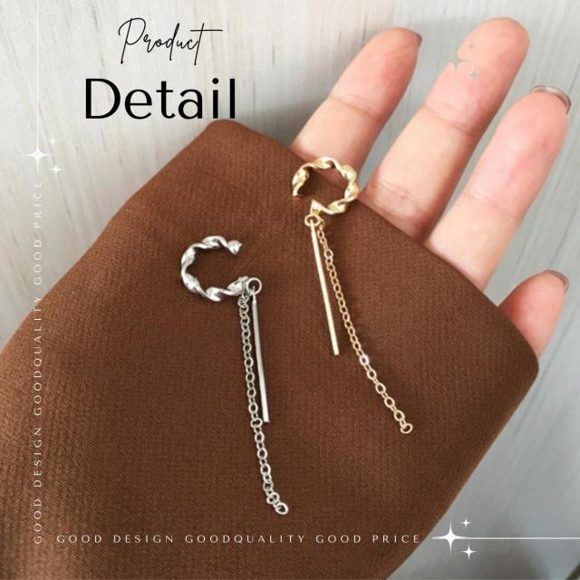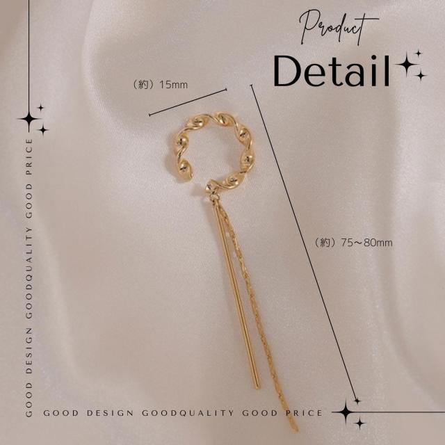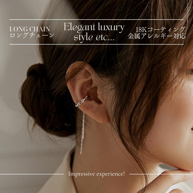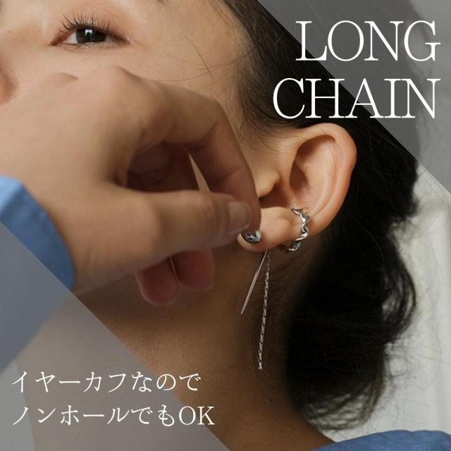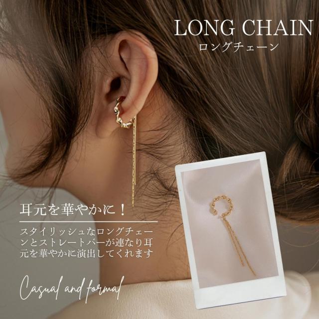特徴:スタイリッシュなロングチェーンとストレートバーが特徴のイヤーカフ。片耳用ですが存在感のあるイヤーカフ となります。