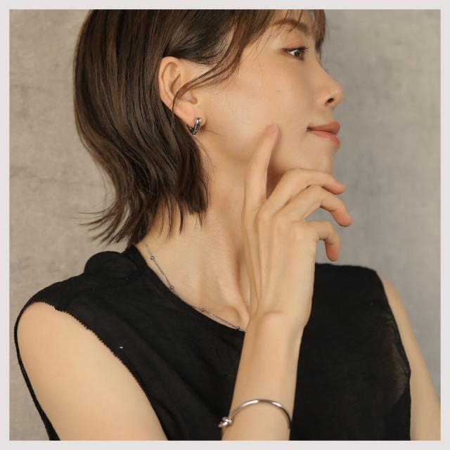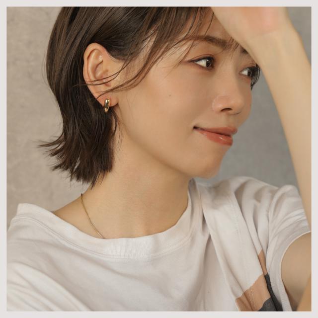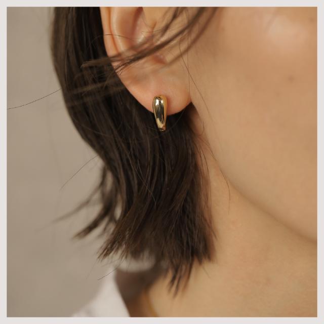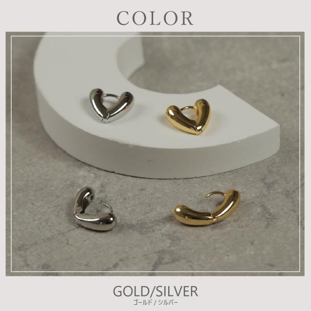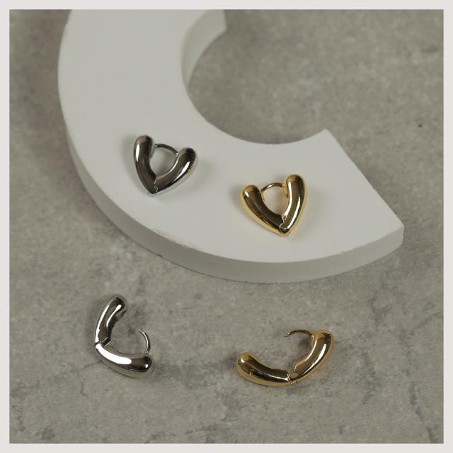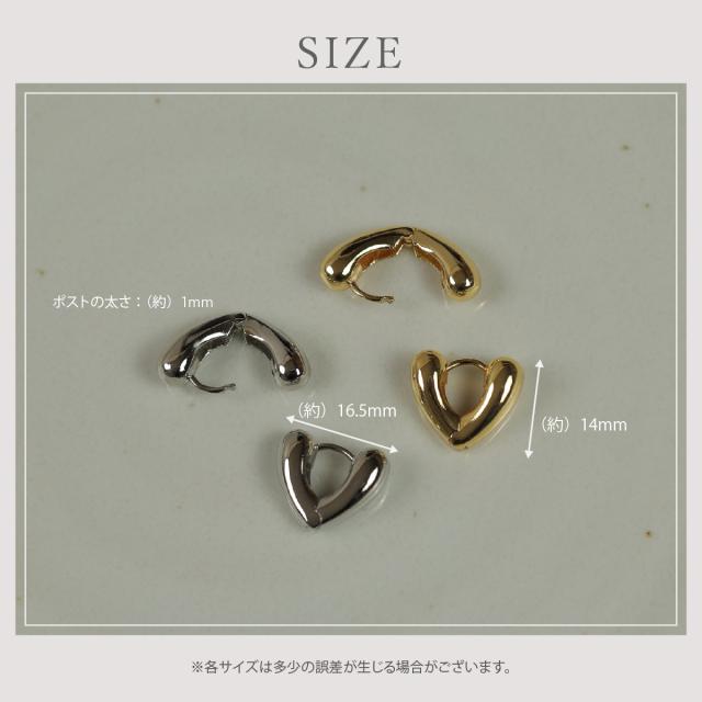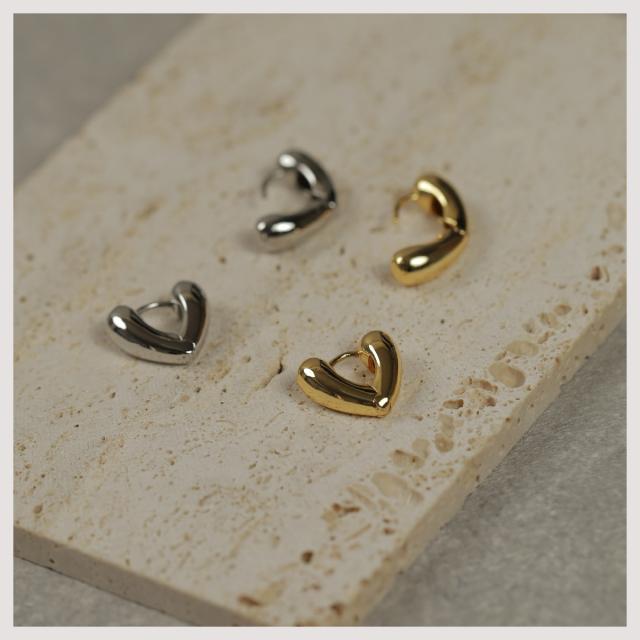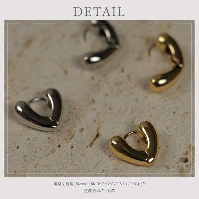 特徴:ぷっくりとしたハート型のデザインが愛らしい、キャッチレスのフープピアス。あなたの耳元に優しい華やぎをプラスします。