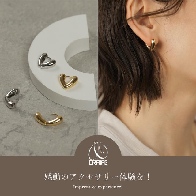 ピアス 金属アレルギー対応 18Kコーティング キャッチレス レディース 大人 ぷっくり ハート モダン シンプル かわいい エレガント ジュエリー ゴールド シルバー 送料無料 プチプライス高見え CRAIFE