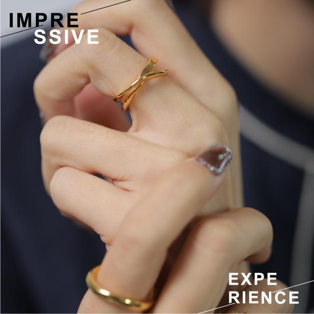 特徴:洗練とシンプルさが融合したクロスデザインリング