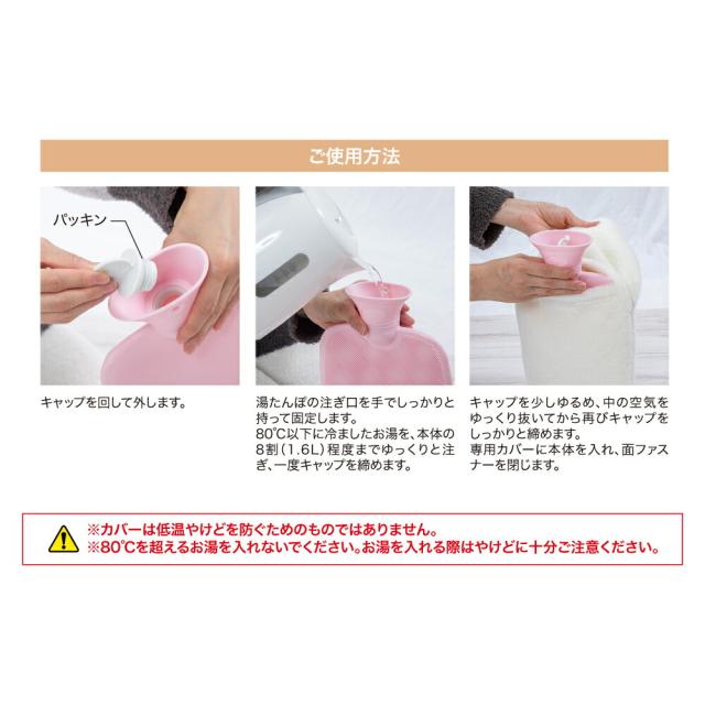 2.湯たんぽの注ぎ口を手でしっかりと持って固定します。