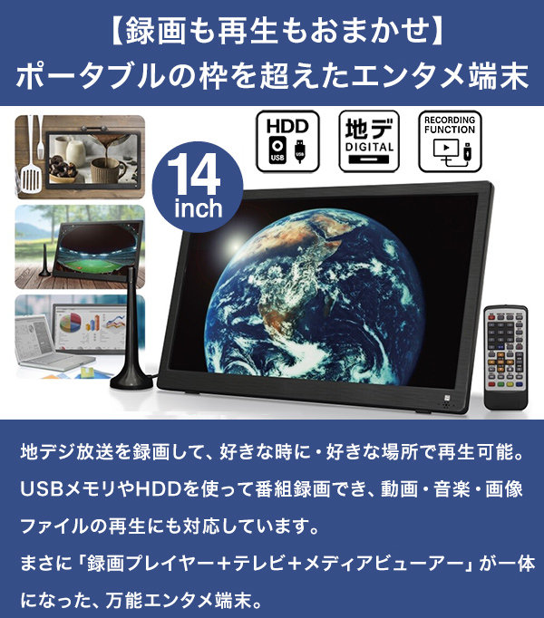 \14インチ録画機能付きポータブルTVのここがポイント/