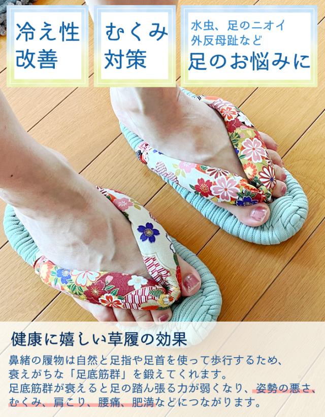 ・鼻緒が大きめに編まれていますので、やや小さいと思われても痛くありません。