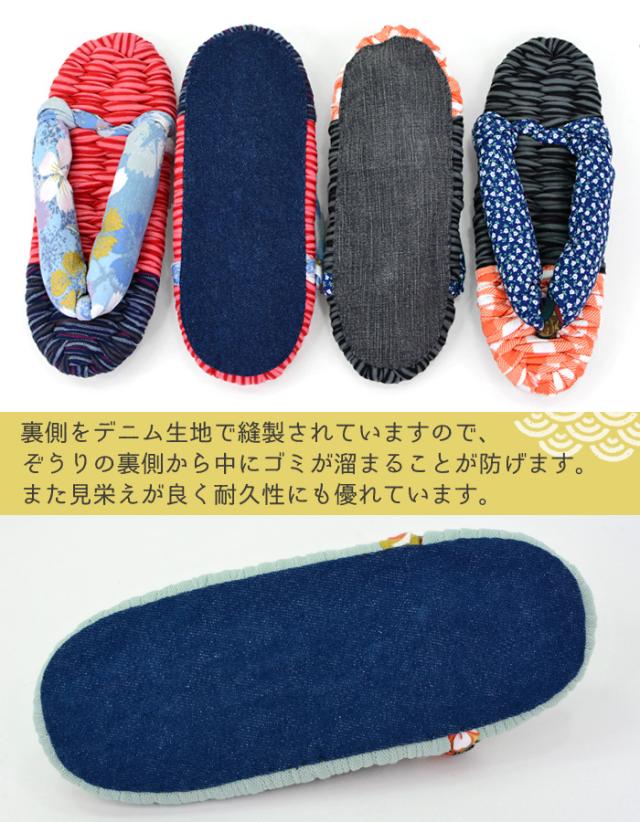 ・ぞうりの裏側をデニム生地で縫製されていますので、見栄えが良く耐久性にも優れています。