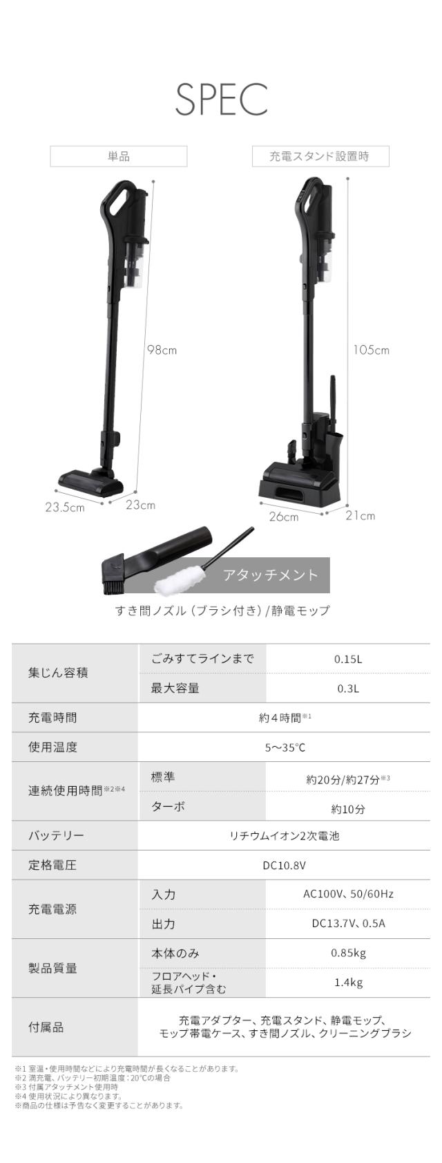 \2,000円OFFクーポン!~12/12 15:59/掃除機 コードレス サイクロン スティッククリーナー [置くだけで充電スタンド付き]アイリスオーヤマ 2way ハンディクリーナー コードレス スタンド モップ 軽量 小型 一人暮らし セカンド掃除機 黒 ブラック SCD-185PM 安心延長保証対象