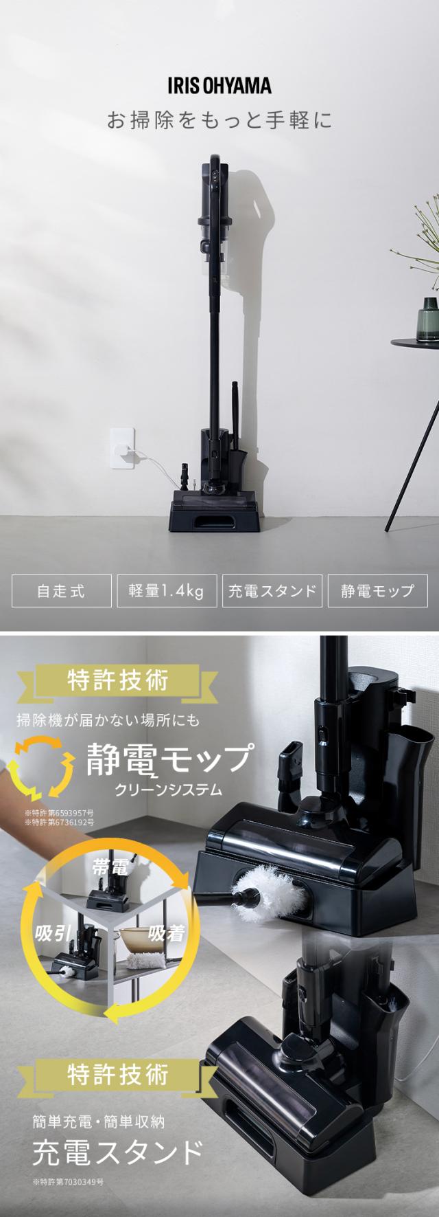 掃除機 コードレス サイクロン スティッククリーナー [置くだけで充電スタンド付き]アイリスオーヤマ 2way ハンディクリーナー コードレス スタンド モップ 軽量 小型 一人暮らし セカンド掃除機 黒 ブラック SCD-185PM 安心延長保証対象