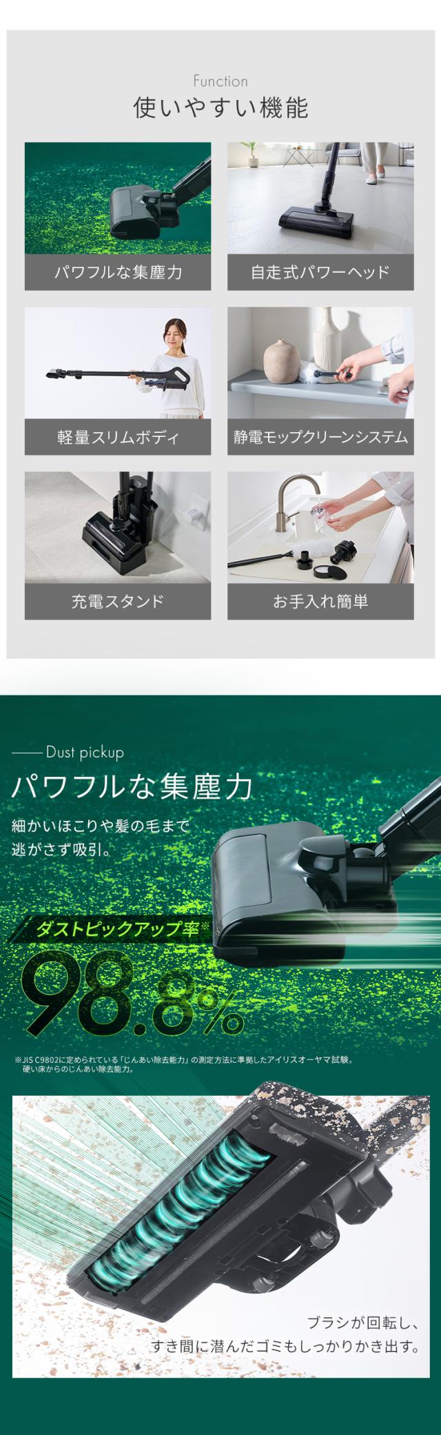 - 使っていたクリーナーがこわれたので購入しました。スタンド付きが良かったです!!モップも使っていこうと思います。