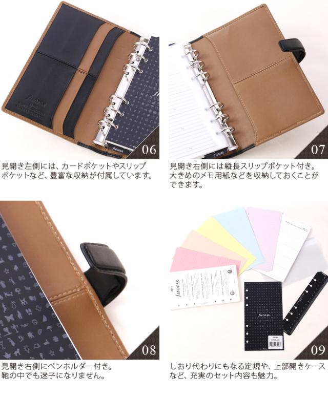 | セット内容 | 年号無し年間スケジュール、定規/ページマーカー、To Doリスト、アドレス帳、インデックス、メモ用紙 ※セット内容はリストや商品画像と異なることがあります。 ※市販のリフィルもご利用頂けます。 |