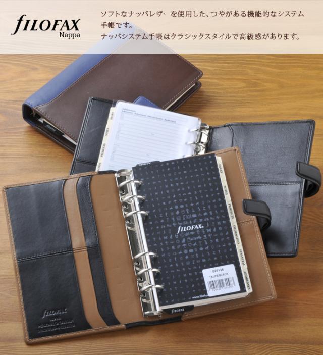 ファイロファックス システム手帳 ナッパ Nappa バイブルサイズ Filofax 6穴 リング径23mm 聖書サイズ 本革 牛革 メンズ レディース 年号無し年間スケジュール付き ベルトボタン留め式