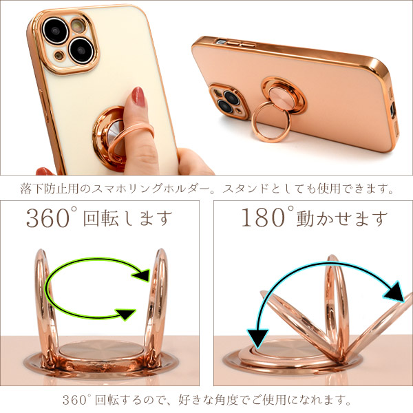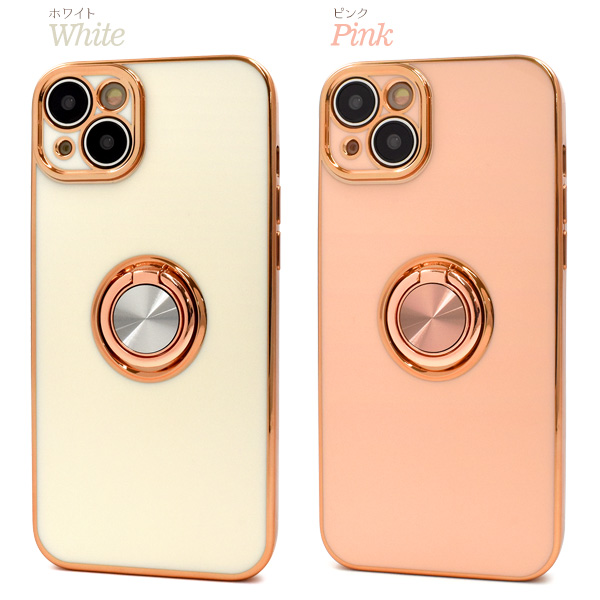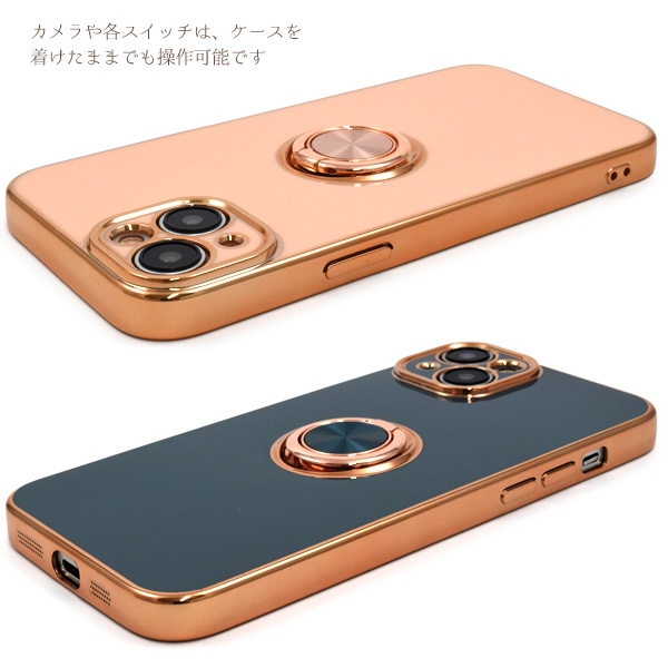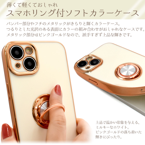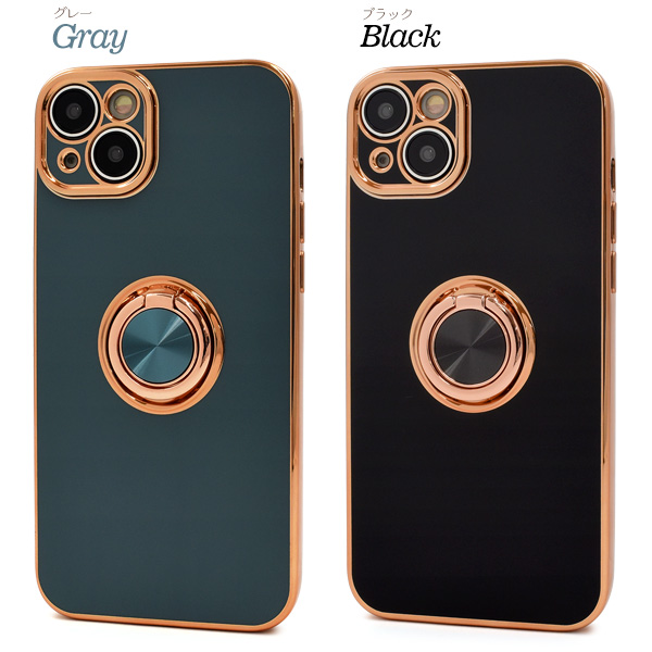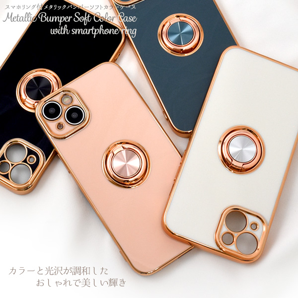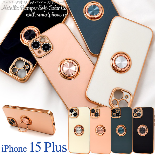 スマホケース iPhone15Plus スマホリング付き メタリックバンパー アイフォン15Plus 背面 保護 カバー ソフトケース 光沢 無地 柔らかい シンプル アイホン スマホカバー アイフォン iPhone 15プラス アイフォン15 プラス 黒 ピンク 灰色 白 くすみカラー