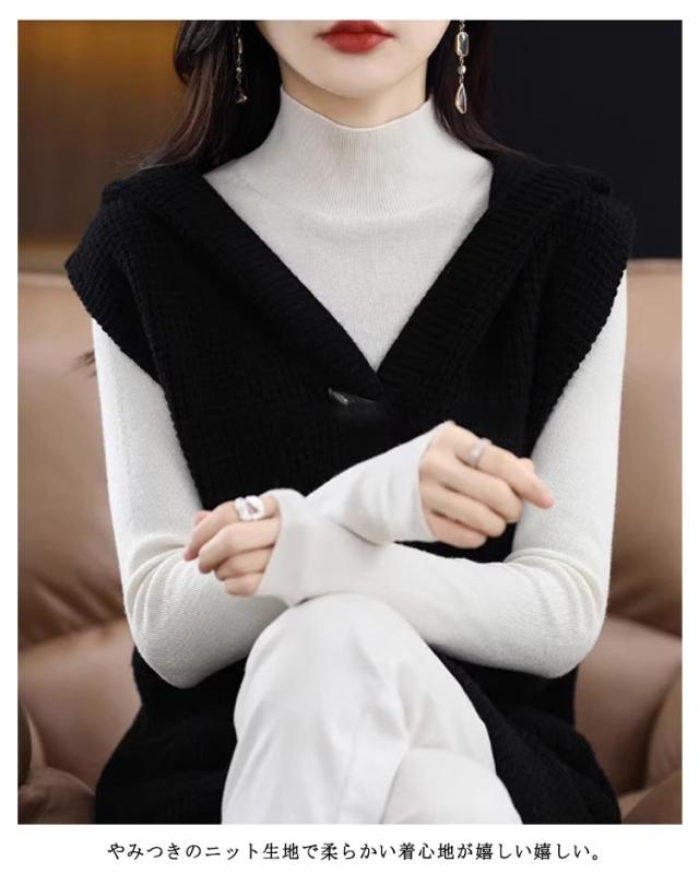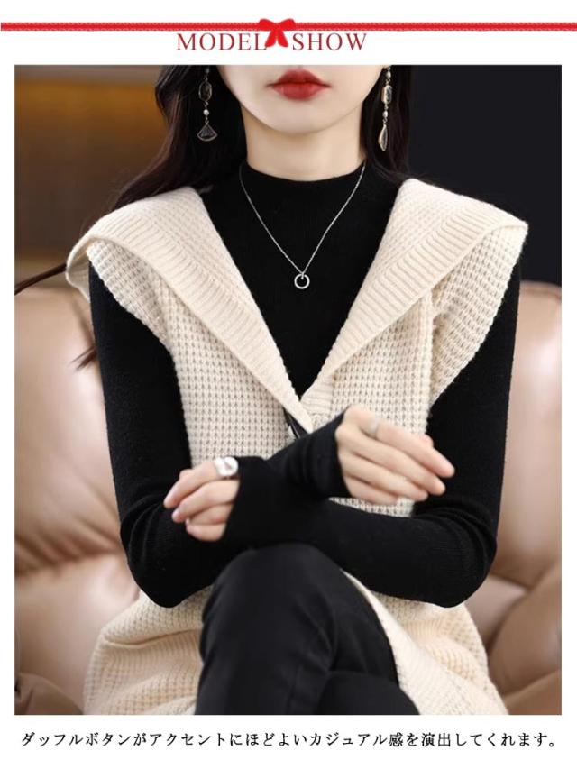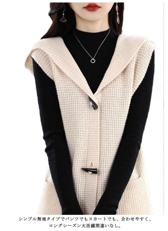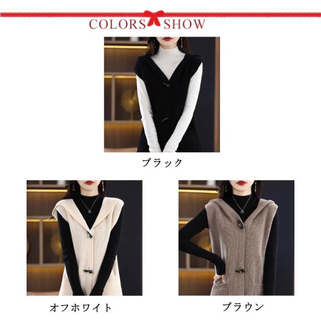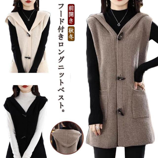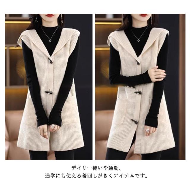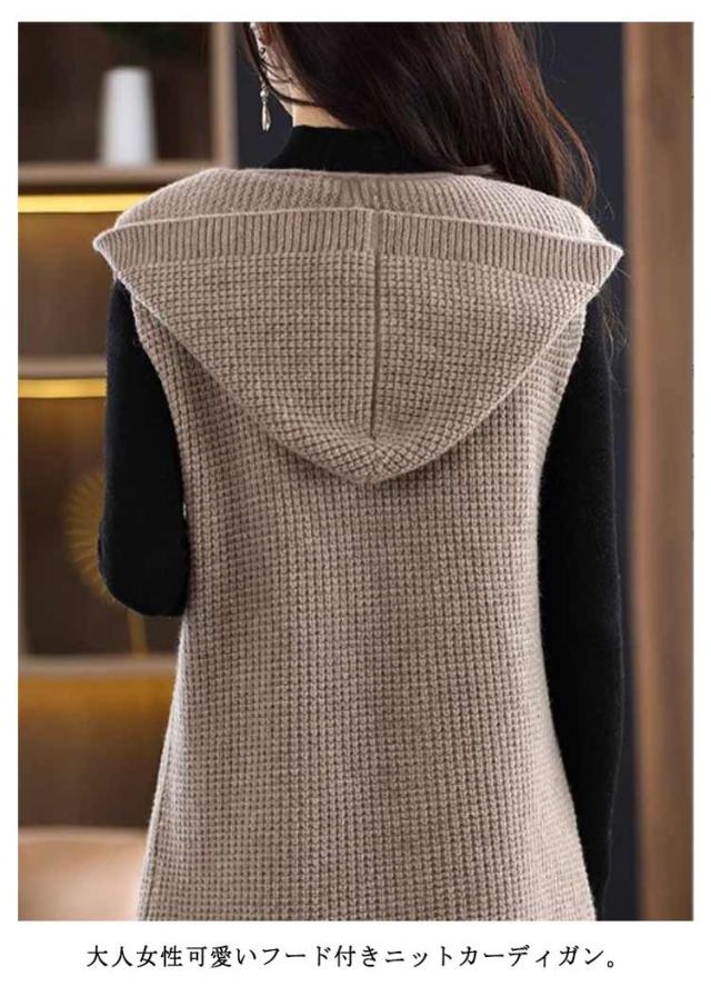 前開き ニットベスト ニットパーカー ニット ベスト レディース 羽織り カーディガン ノースリーブ ニットベスト ポケット付き フード付き 送料無料 無地 レイヤード 重ね着 トップス お洒落
