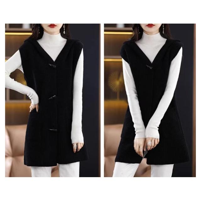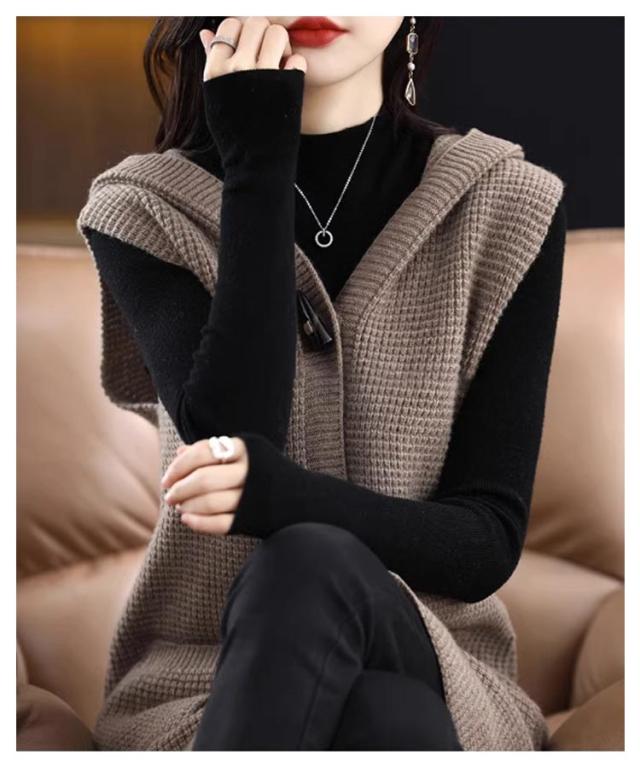 | フード付きロングニットベスト。 ダッフルボタンがアクセントにほどよいカジュアル感を演出してくれます。 大人女性可愛いフード付きニットカーディガン。 やみつきのニット生地で柔らかい着心地が嬉しい嬉しい。 シンプル無地タイプでパンツでもスカートでも、合わせやすく、ロングシーズン大活躍間違いなし。 デイリー使いや通勤、通学にも使える着回しがきくアイテムです。 | |