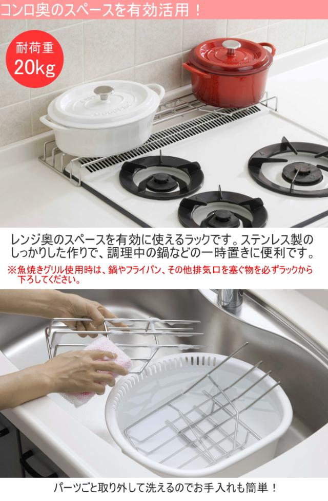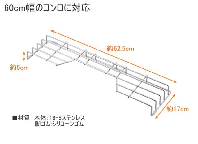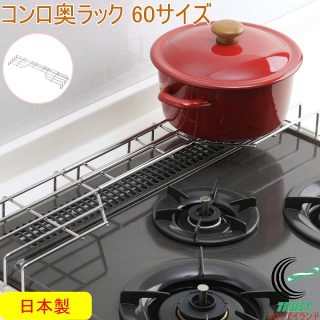 18-8ステンレス コンロ奥ラック 1個 60サイズ 日本製 ステンレス ラック コンロ コンロまわり すき間活用 デッドスペース 有効活用 鍋置き