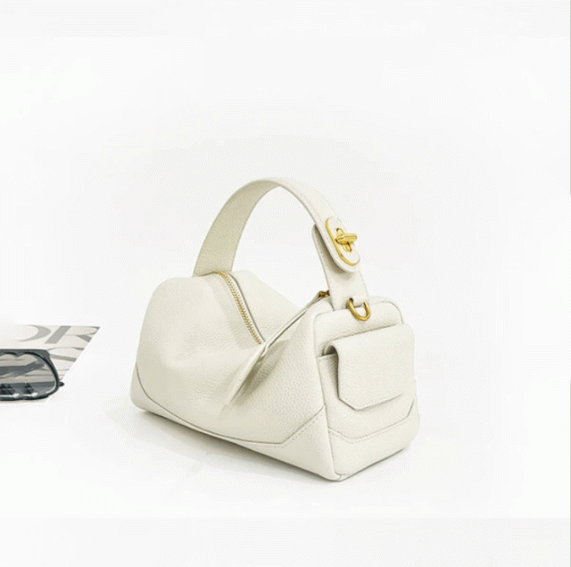 - ハンドルのデザインが良いです。(あと2cm長いと、星6個!!) 色はベージュ寄りの白で、マットな質感。 (個人的には、もう少し白いともっと嬉しかったのですが、) 柔らかい革で、手に馴染む感じも良い感じ...