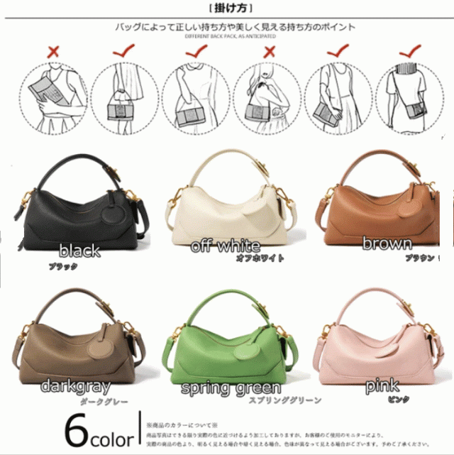 本牛革ハンドバッグ レディース 2way 牛革 革 レザー 柔らかい 本革 斜めがけ バッグ ソフトレザー カラフル ショルダバッグ マチが広い 出し入れしやすい カジュアル ブラウン ブラック ダークグレー スプリンググリーン オフホワイト ピンク 10代20代30代