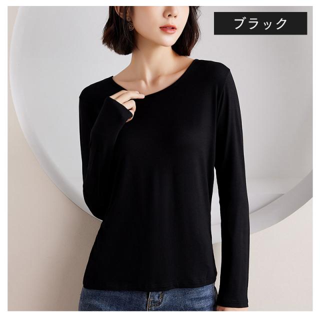 裏起毛 カットソー インナー レディース トップス 秋 冬 長袖 カットソー 大きいサイズ 黒 あったか 裾ラウンド ボーダー Tシャツ 重ね着風 レイヤード風 おしゃれ 春 夏 春服 秋 秋冬 秋服 冬服カジュアル ナチュラル きれいめ 大人