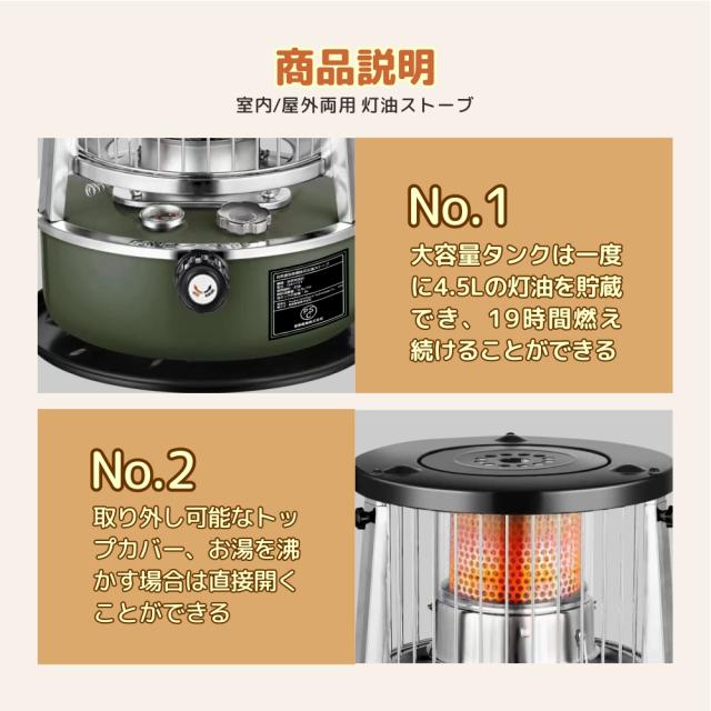 【2025新型登場★防寒対策】石油ストーブ 小型 灯油ストーブ 石油ストーブキャンプ 対流型石油ストーブ アウトドア 暖房器具 持ち運び便利 1台2役 省エネ タンク容量 4.5L 急速加熱 防寒対策 オフィス住設用品 psc認定済【屋外使用專用】