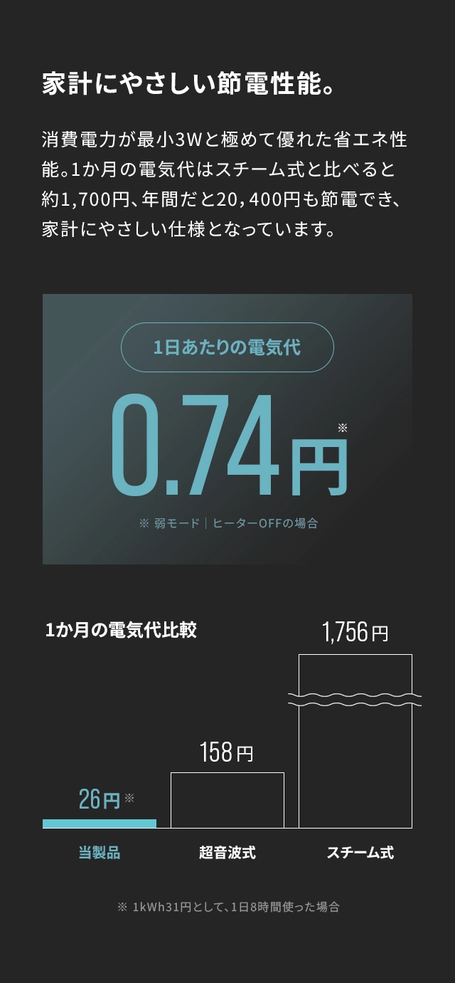 消費電力…3W(弱モード/ヒーターOFF)