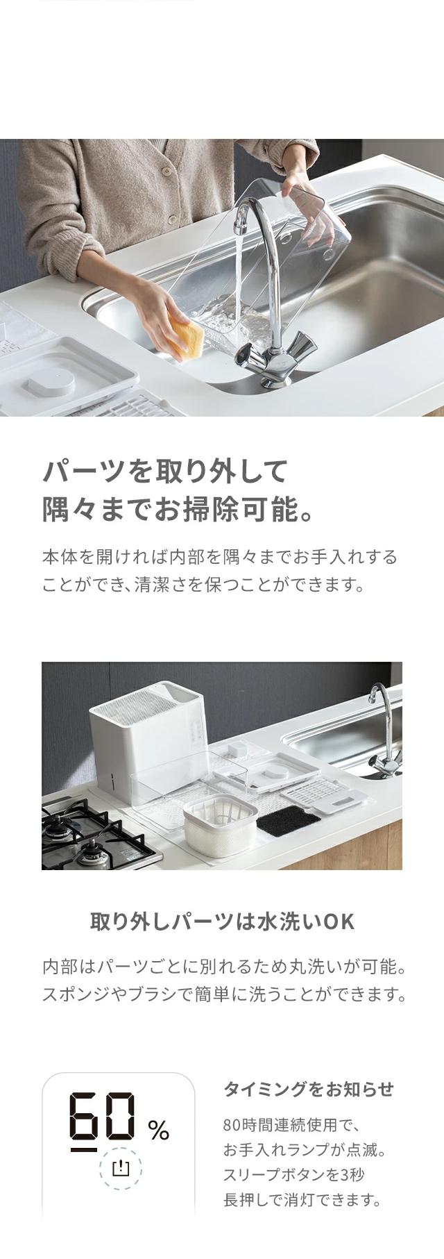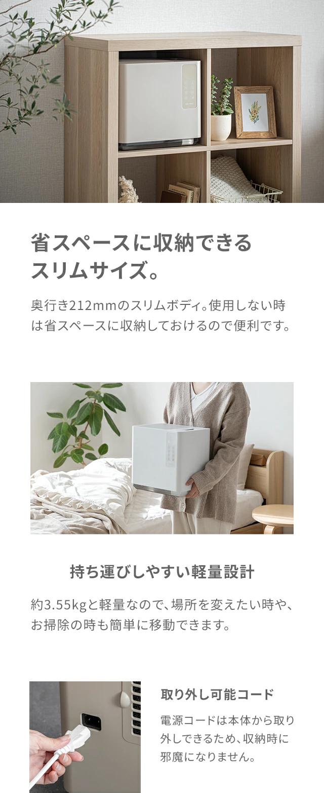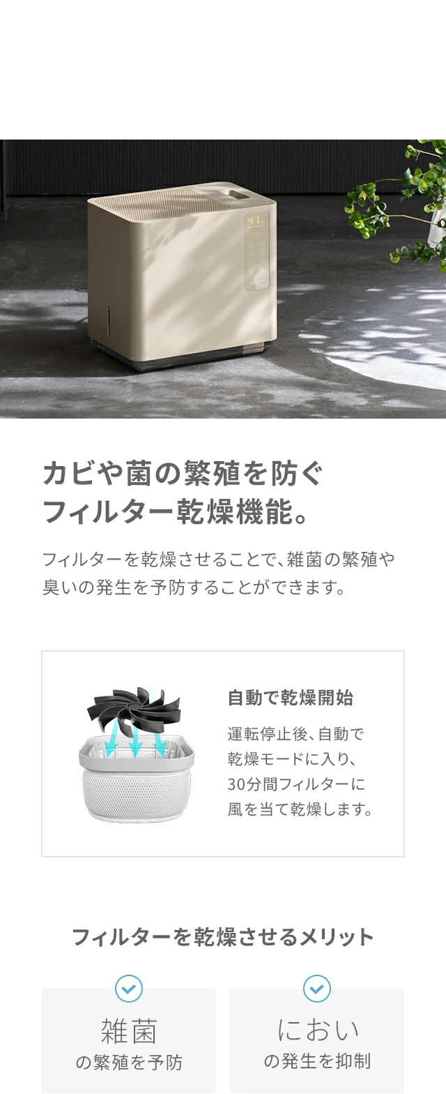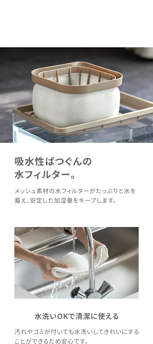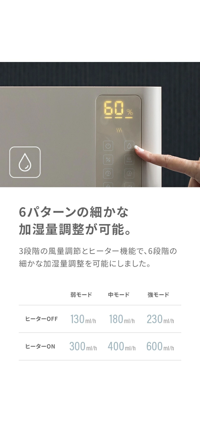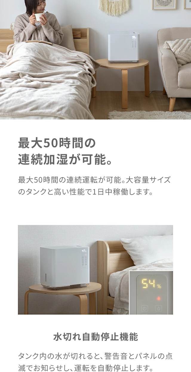 連続加湿時間…約50時間(弱モード/ヒーターOFF)